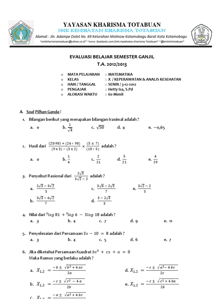 Soal ukk uas bahasa indonesia kelas 12 sma/smk semester 1. Tulis namamu di sudut kanan atas 2. Posted on march 5, 2013 by guruciamik. Salah satu bentuk latihan kombinasi kekuatan (power ) adalah……. Soal usbn sma smk smtk smak smp.